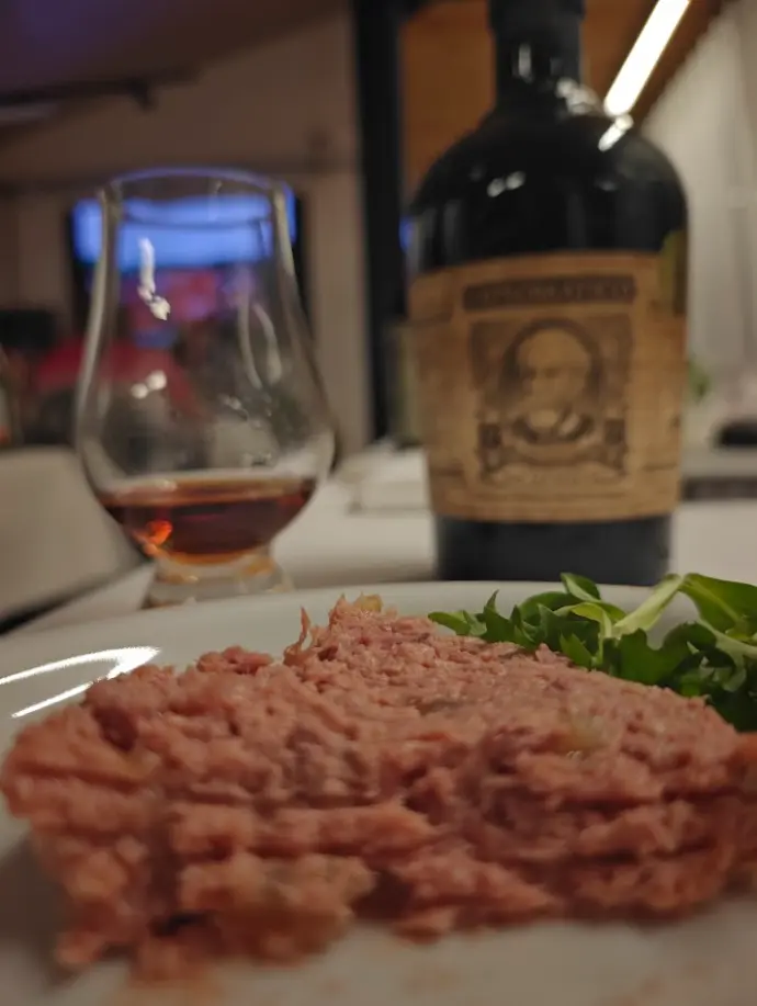 De diplomatico Seleccion de Familia combineerden we met een perenpaté. Deze rum werd al snel als de verrassing van de avond bestempeld in de positieve zin. Lag het aan de paté of aan de rum, dat laten we even in het midden.